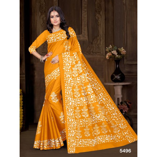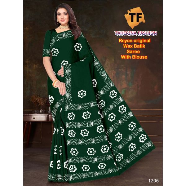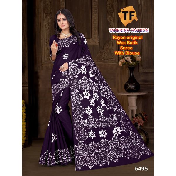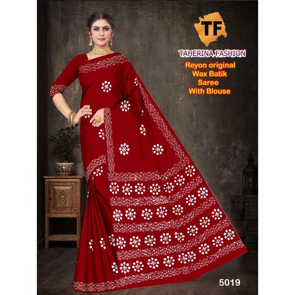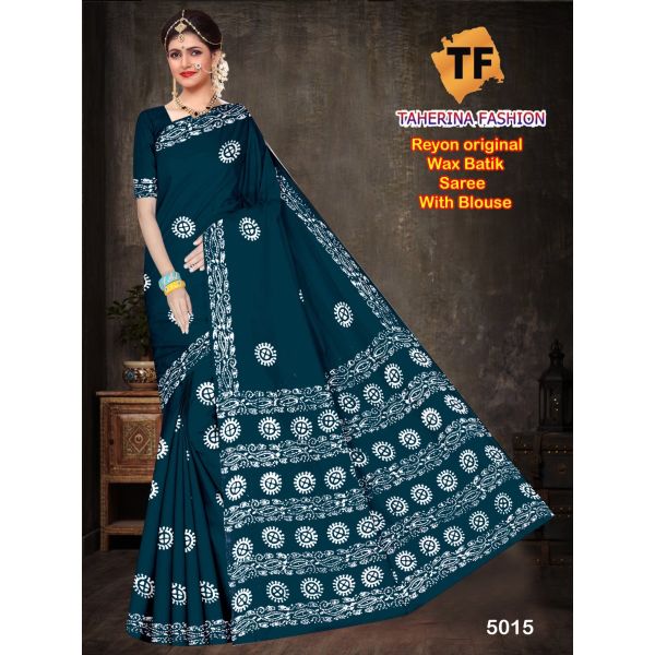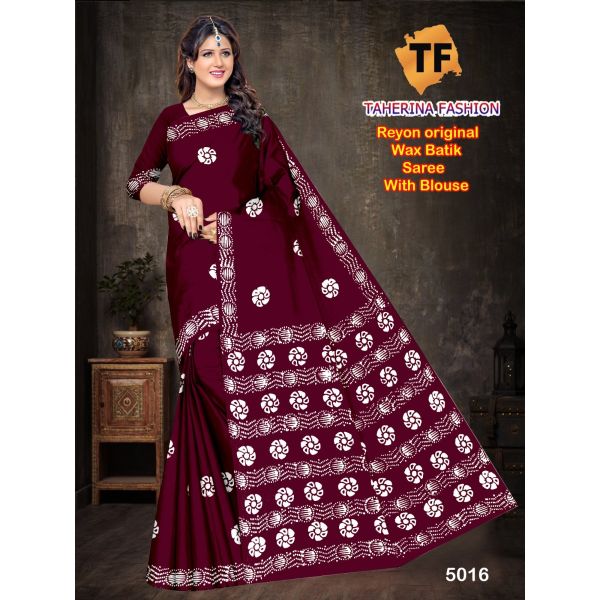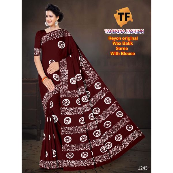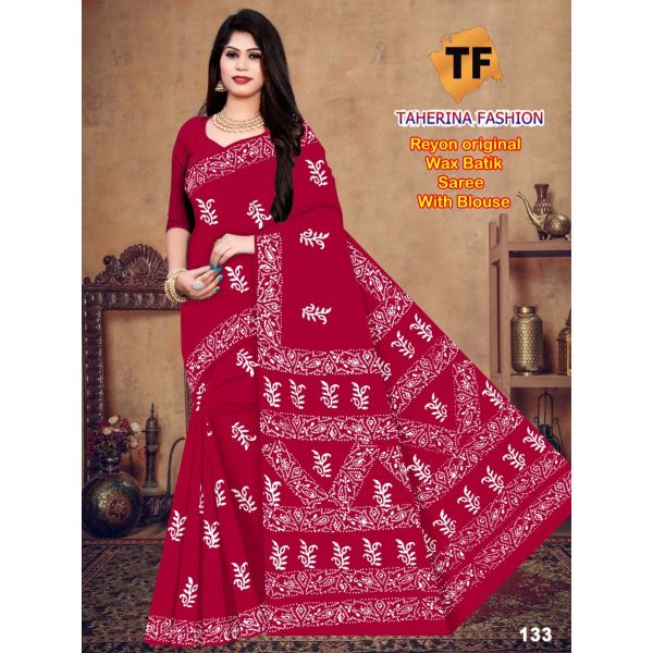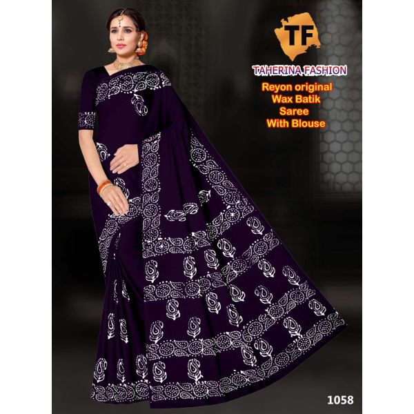Name : Single Colour Rayon Batik Block Print Saree
